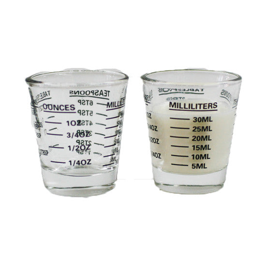 Mini Measuring Shot Glass Measures 1oz, 6 Tsp, 2 Tbs, 30ml